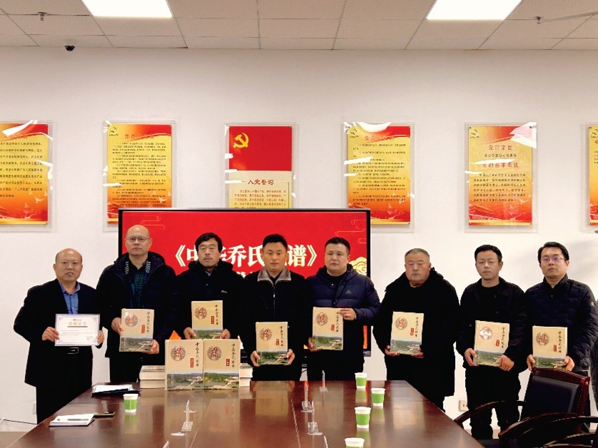 捐赠方代表山东聊城桥山文化研究工作委员会会长乔丙振详细介绍了该套统谱的编纂历程与内容体系。赠书共16册,涵盖《总谱》、《世系卷》、《人物卷》、《企业家卷》、《事记卷》及《山东分谱》等,系统梳理了乔氏家族的历史源流、支系脉络与人物事迹,兼具文献整理价值与人文传承意义。