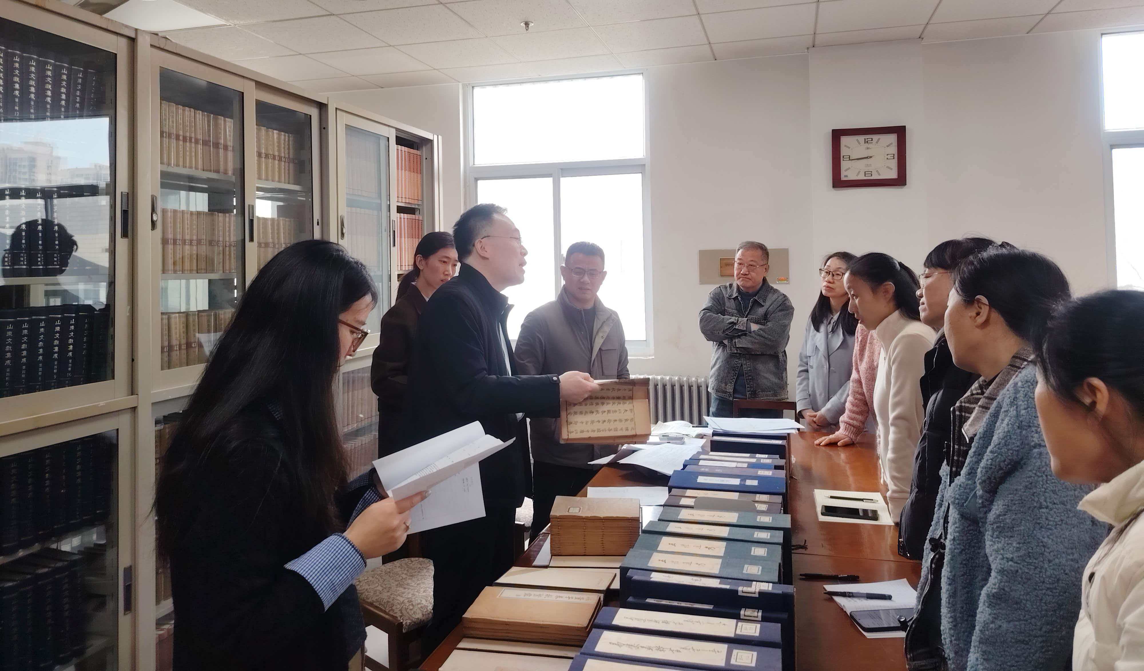 时间:2026-03-31 08:53:00 作者:读者服务部 阅读:为扎实推进山东省高校图书馆“十大镇馆之宝”评选申报工作,进一步提升馆藏古籍整理与研究水平,图书馆于3月30日下午,邀请运河研究院周广骞副院长在图书馆古籍书库作专题报告并现场交流。副馆长刘冰主持交流活动,副馆长王凤刚及相关馆员教师参加。