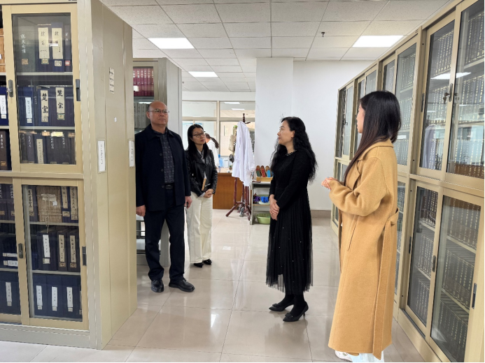 座谈会后,桑红燕一行实地考察了西校区图书馆,详细了解馆藏布局、空间利用及服务开展情况,并就相关工作提出指导意见。
